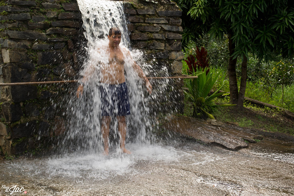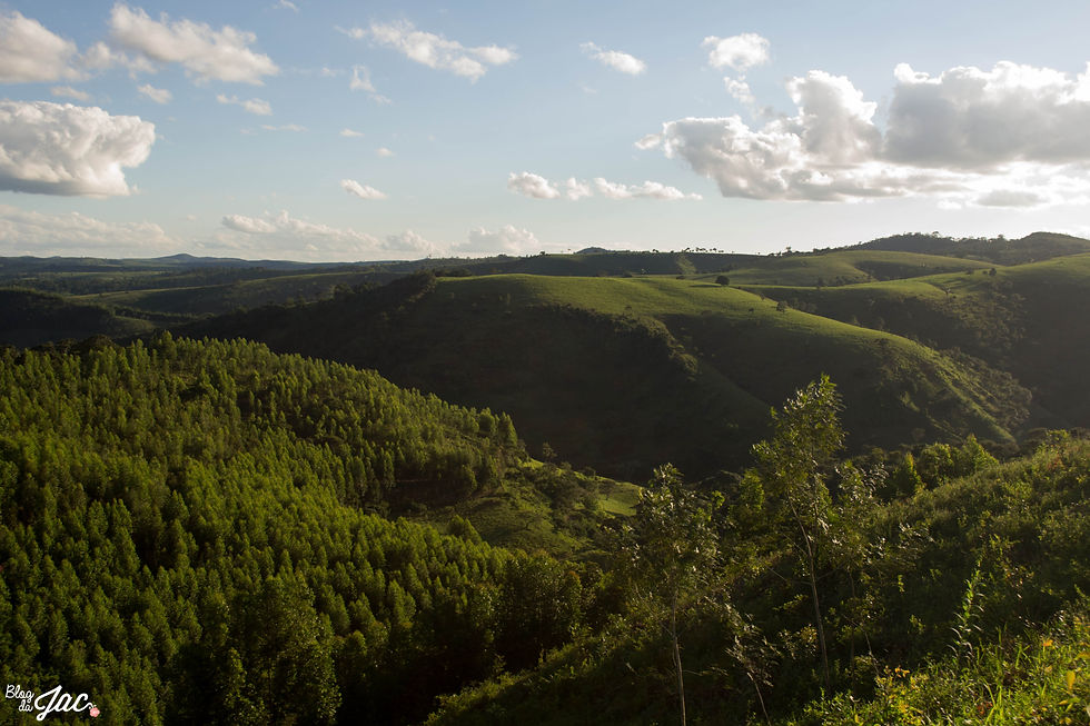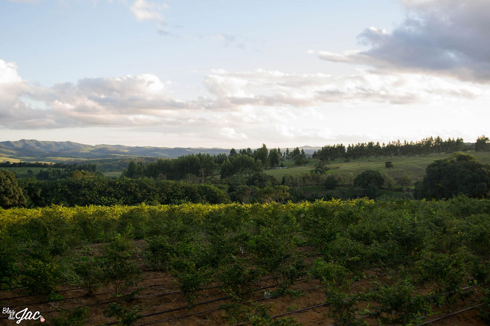 Lá em cima, nas serras, vimos o reflorestamento que foi feito pelos proprietários da fazenda, substituíram morros que antes recebiam plantação de cana de açúcar e plantaram árvores frutíferas, eucaliptos, pimenta malagueta para exportação, um belíssimo pomar e uma horta orgânica maravilhosa.
